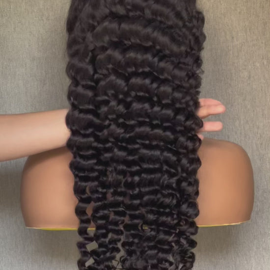 M Hair 200% Density Silky Deep Wave 13x4 HD Lace Full Frontal Wig 100% Human Hair